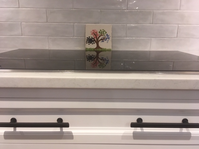 In a recent Dover renovation, three stools would have been “OK”, but four stools was just right. Eliminating a cabinet in the face of the fourth occupant created a chance to avoid an abrupt end to the upper cabinets and have some fun with a chalk board… which can show support for the local team… or to highight the week’s family commitments. Because this client was living with an old electric cook top, this new induction top probably made one of the biggest improvements when it comes to one of the kitchens most important functions- before and after school meal prep! More photos of this fun space to follow.