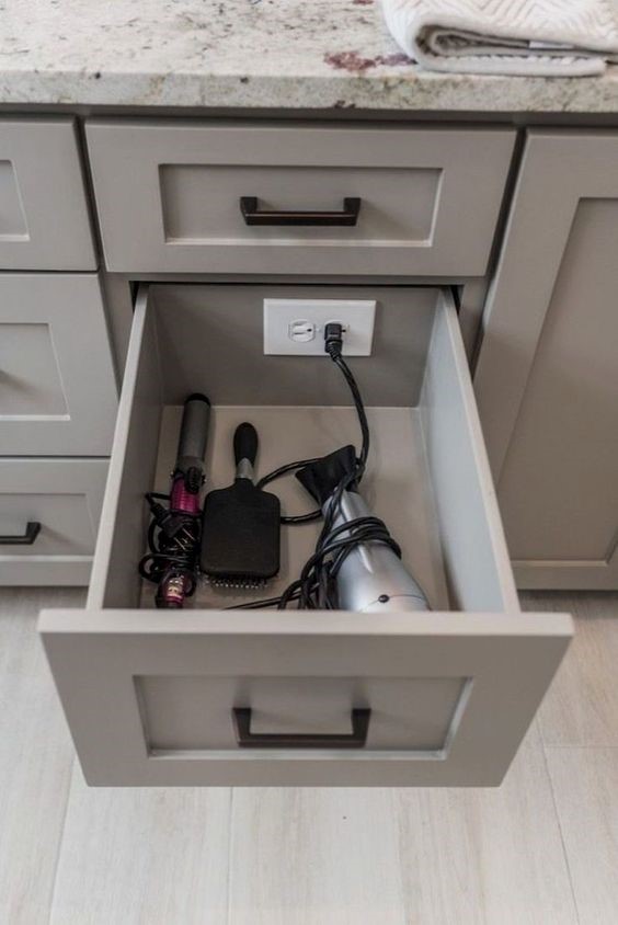 Would your daily routine be easier if your hair dryer or curling iron was always plugged-in and ready for the morning? A concealed receptacle for them or even your electric toothbrush can be part of your bathroom design plan. The only thing you need to spend time on is coming up with the list of ways we can make your home life better and we can take care of the rest.