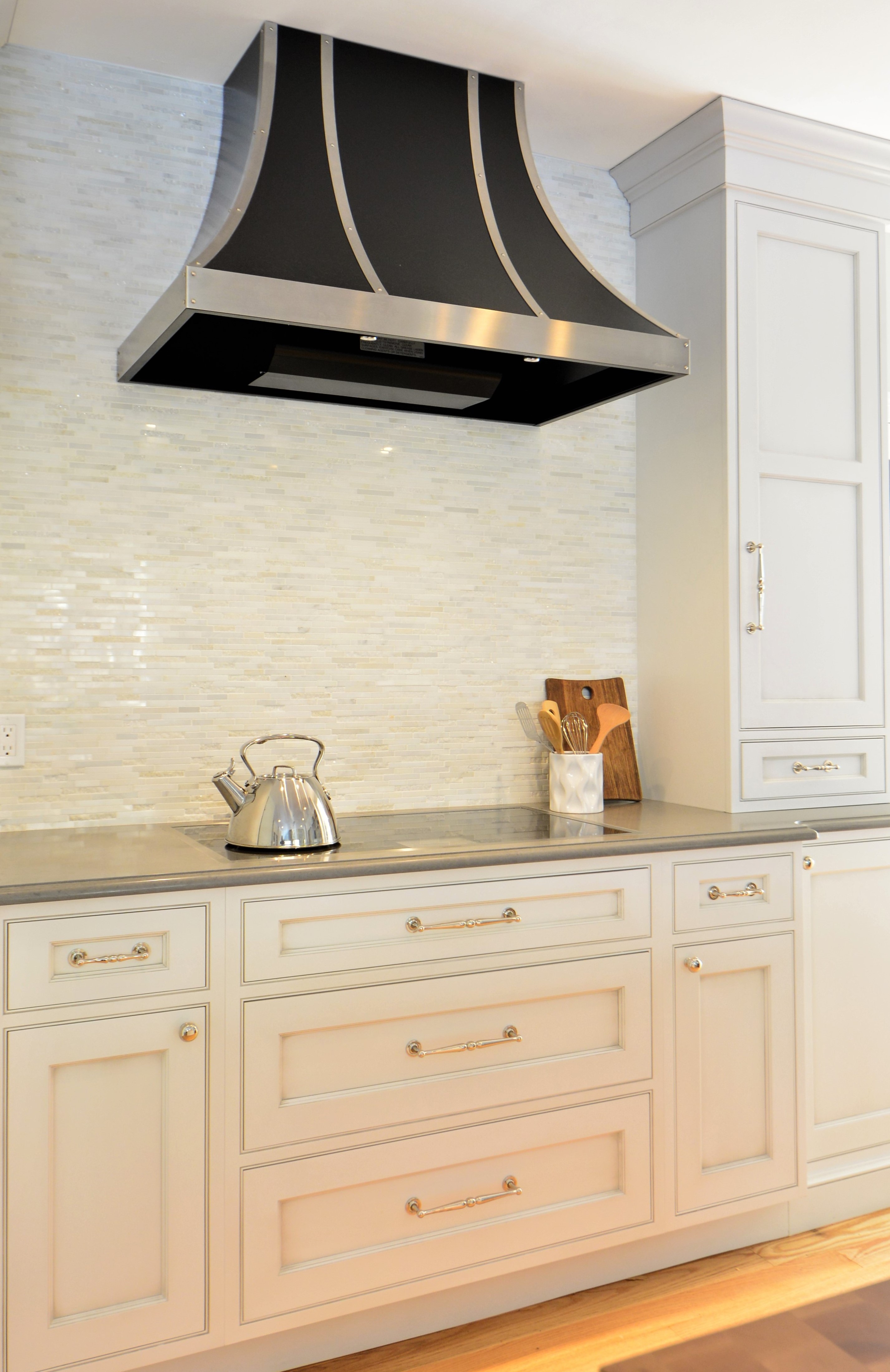 Hoods have also become part of this trend. While the custom hood in this kitchen is very classic, the cabinetry with its recessed panels and center rail provide the synergy of the textured, beautiful and monolithic presence of the backsplash.