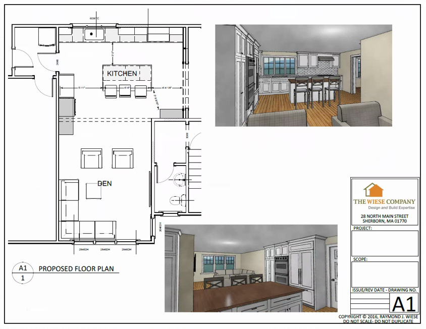 Below are four unique concepts for a Dover kitchen remodel. The client chose design A4 for the initial concept and from it continued to be refined and tweaked until all needs were met- down to adding the additional last counter stool to make it four!