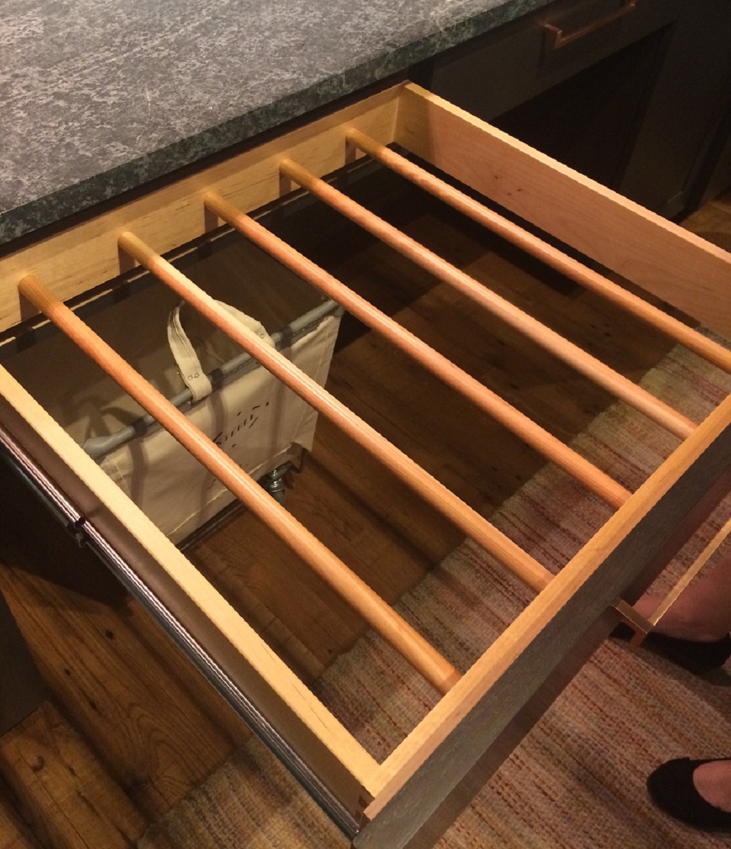 Making your cabinetry exactly what you want. Fully custom cabinetry offers interesting opportunities. We are often asked about ways to add and hide drying racks- we loved this!