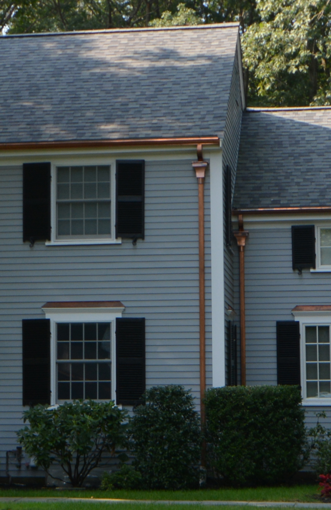 And as you can see on the after picture above, as a homeowner, you’ll need to evaluate what product and style make sense for you. For this Wiese Company project, the client selected copper gutters and copper window heads to finish off their exterior remodel. Product selection starts with the architecture… and siding makes a big difference.