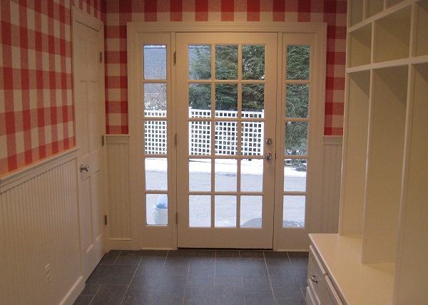 Beadboard wainscoting is traditionally installed using wood planks that have a beaded edge. The earlier use of this material boomed in Victorian architecture as a result of steam mills. It was common enough that it can often be found in the service stair or even on housing built for factory workers so that the wainscot could be a durable protective buffer and require minimal maintenance. Most of what we install today is purchased in sheets, and with an upscale manufacturer we have many pattern options that look as robust as the original ¾” boards. Traditional mudrooms are a favorite for this application with all the abuse a mudroom takes with things we come and go with daily.